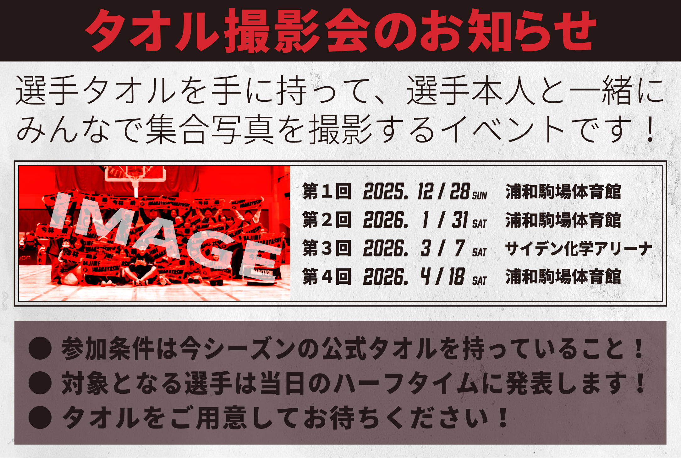 ・参加条件は、2025-26シーズンの選手別の公式タオルを持っていること!