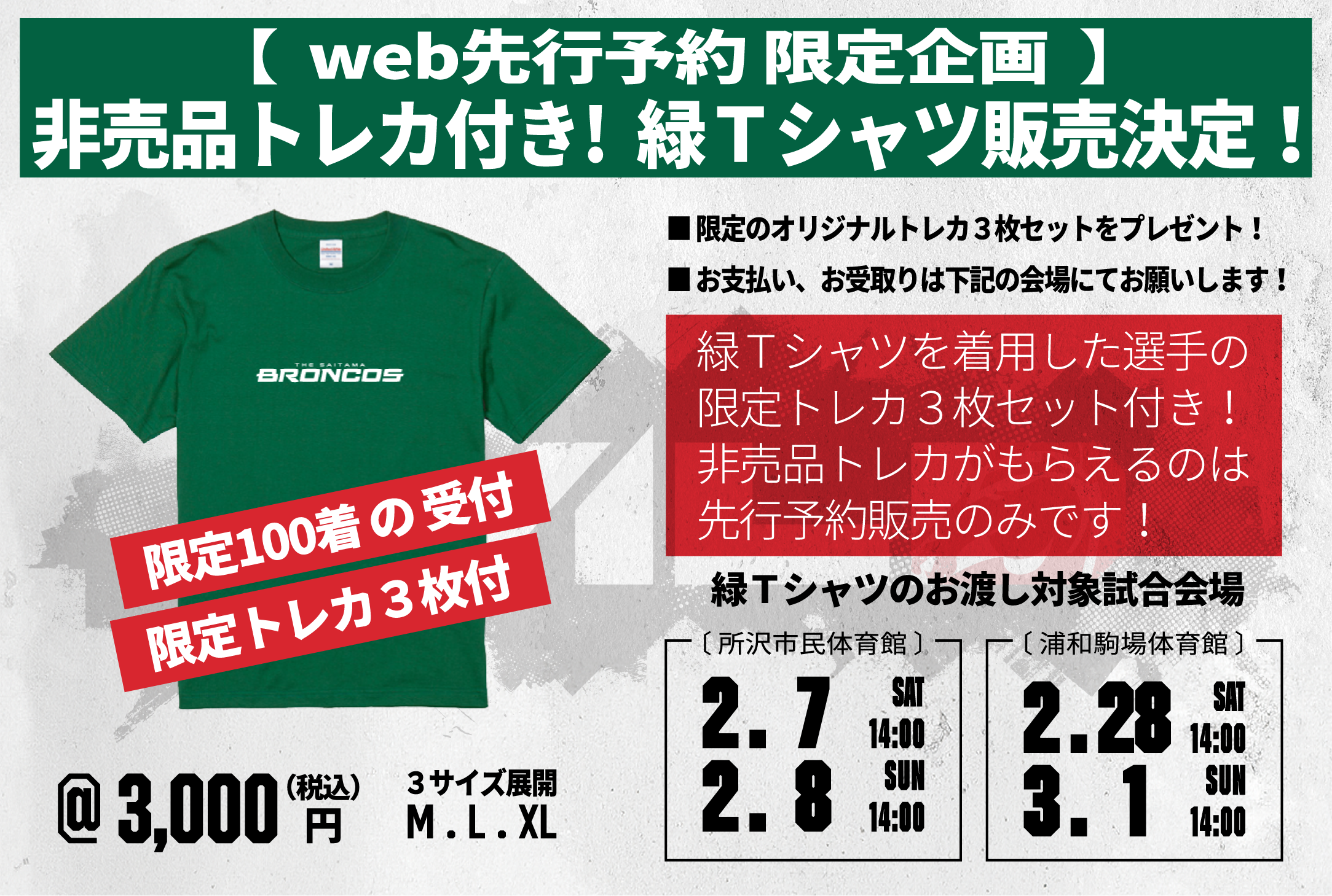 2025-26SEASON さいたまブロンコス 限定トレカ付き緑Tシャツ予約受付を開始いたします。
