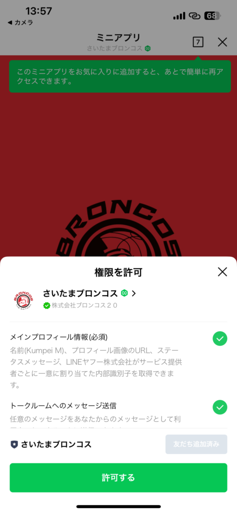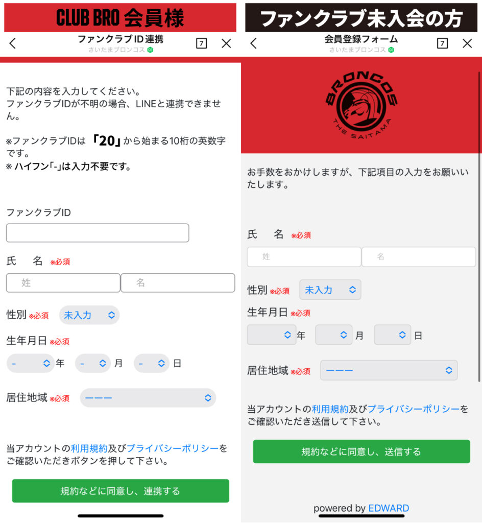 上記の内容をさいたまブロンコスのLINE公式アカウント宛または「fanclub@broncos20.jp」にお送りください。LINE会員証を変更しないと会員証がランクに合った表示にならないため、ご連絡をお願いいたします。