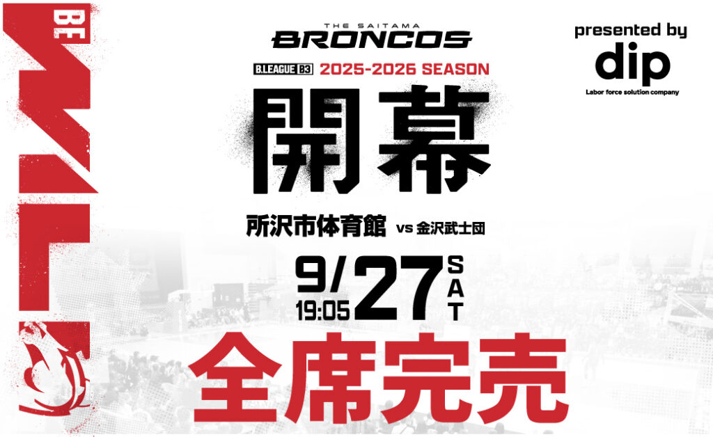 所沢開催 9/27(土)、9/28(日)vs金沢武士団 presented by ディップ株式会社