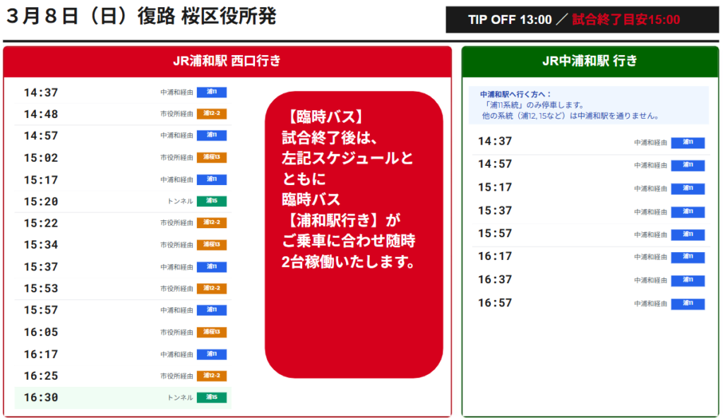 ご来場バスのご案内(復路)