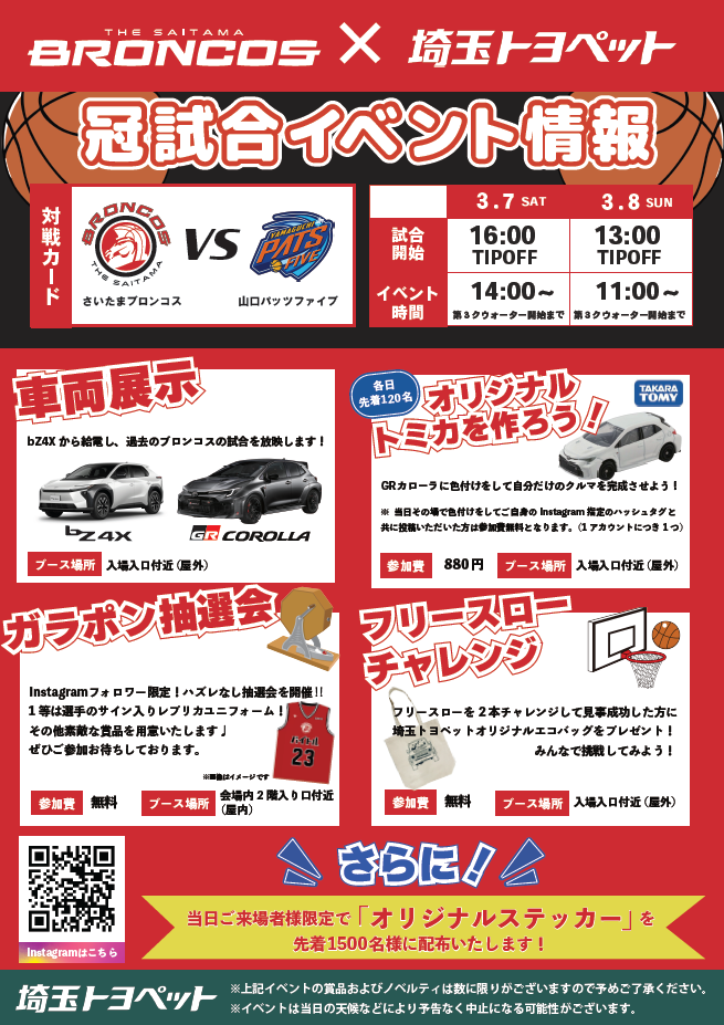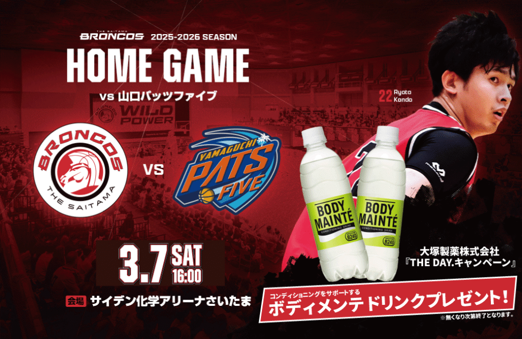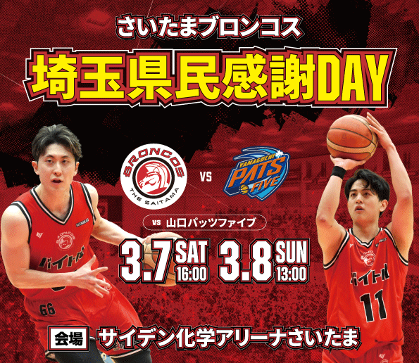 さいたまブロンコス3/7(土),3/8(日)vs山口パッツファイブ @サイデン化学アリーナさいたま 開催概要