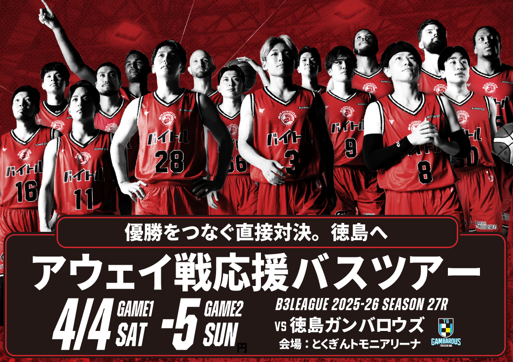いつもさいたまブロンコスへの熱い応援ありがとうございます。この度さいたまブロンコスでは、きたるプレーオフ・そしてレギュラーシーズン優勝に希望をつなぐ徳島ガンバロウズとの直接対決にあたり、アウェイ戦応援バスツアーを開催することとなりました!