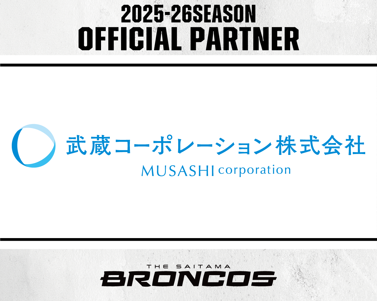 この度、さいたまブロンコスは、武蔵コーポレーション株式会社と2025-26シーズンより、オフィシャルパートナー契約を締結いたしましたのでお知らせいたします。