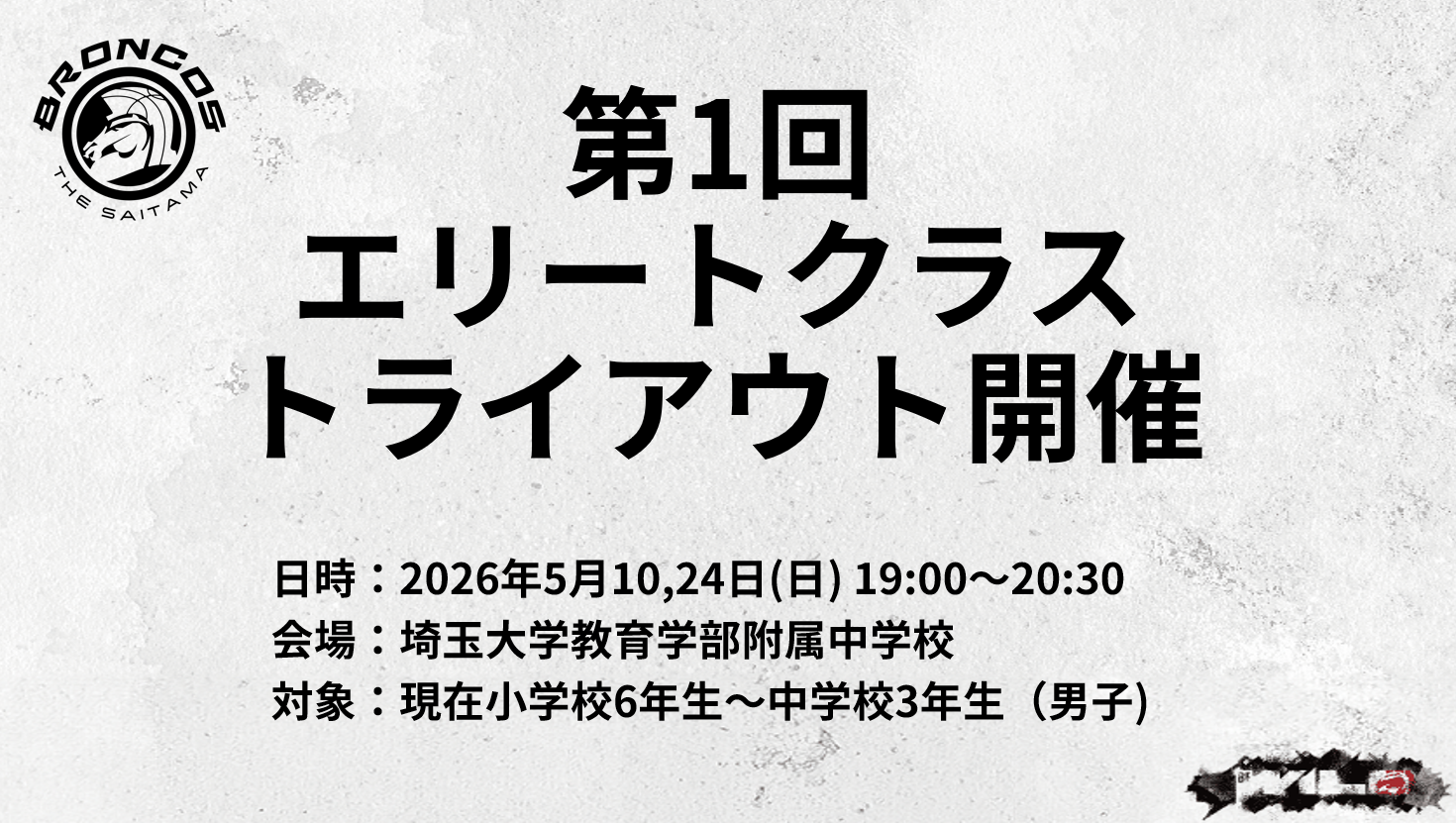 この度、さいたまブロンコスでは2026年度エリートクラスのトライアウトを開催いたします。